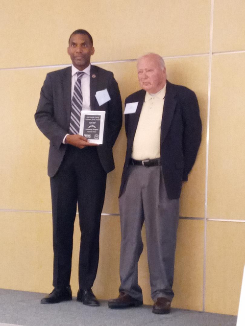Carl Sell, at right, receives award as Fairfax County Community Champion from Franconia District Supervisor Rodney Lusk. (Photo: Daniel Bearth)