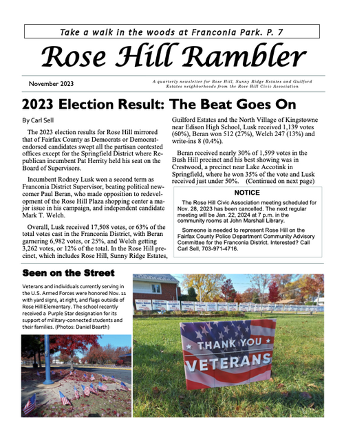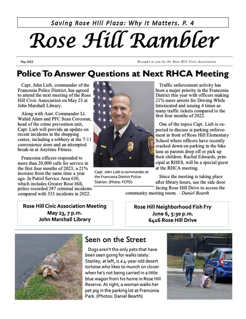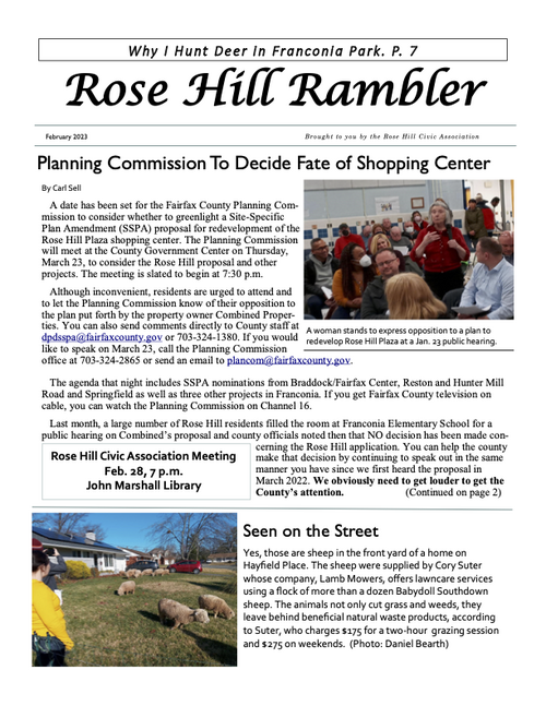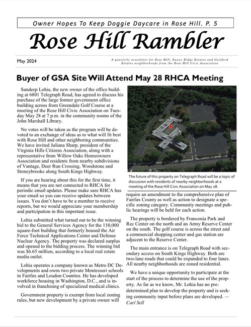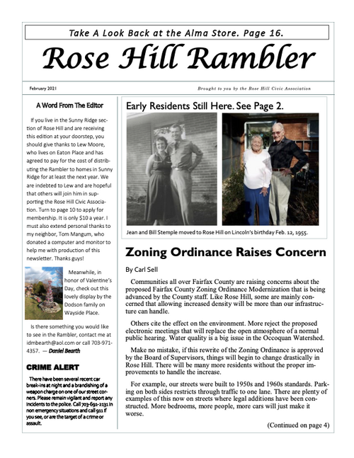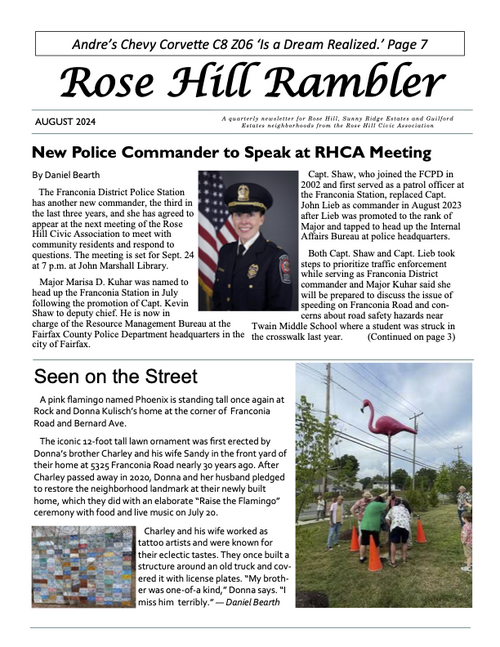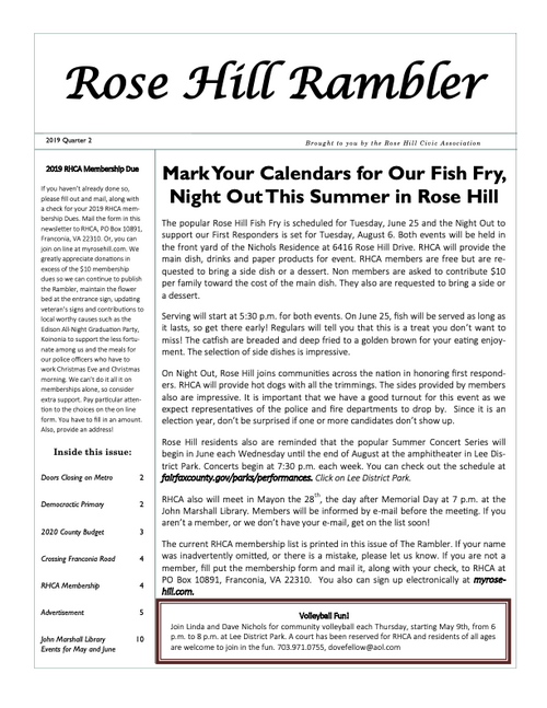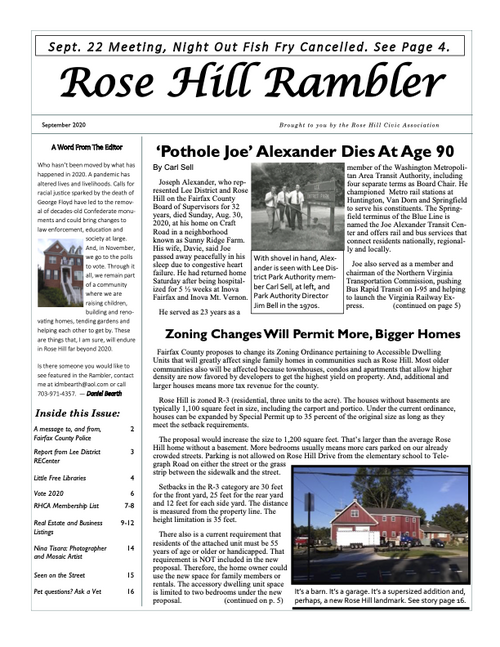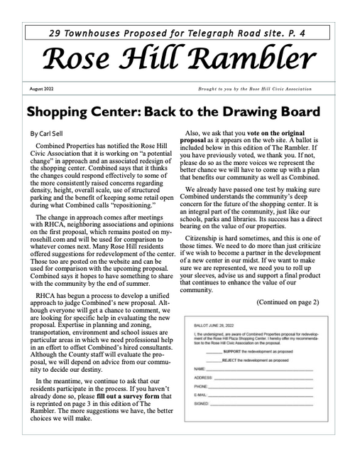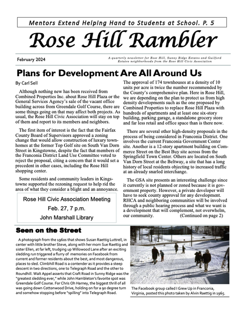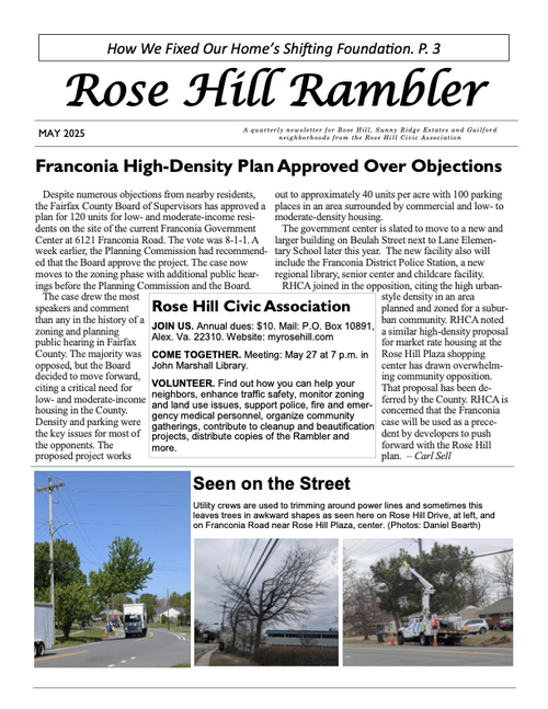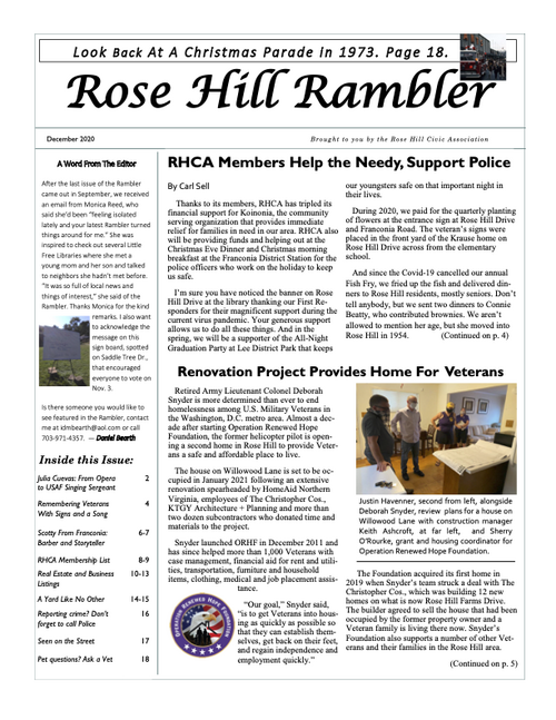 The Rambler is the Rose Hill Civic Association newsletter. A printed newsletter is delivered to all of our Rose Hill neighbors quarterly. Electronic newsletters and information are sent via email on an as needed basis. You can find an archive of past Ramblers below, and we post a copy of the Rambler's quarterly featured article on the home page of this website. To join our email list please click below.